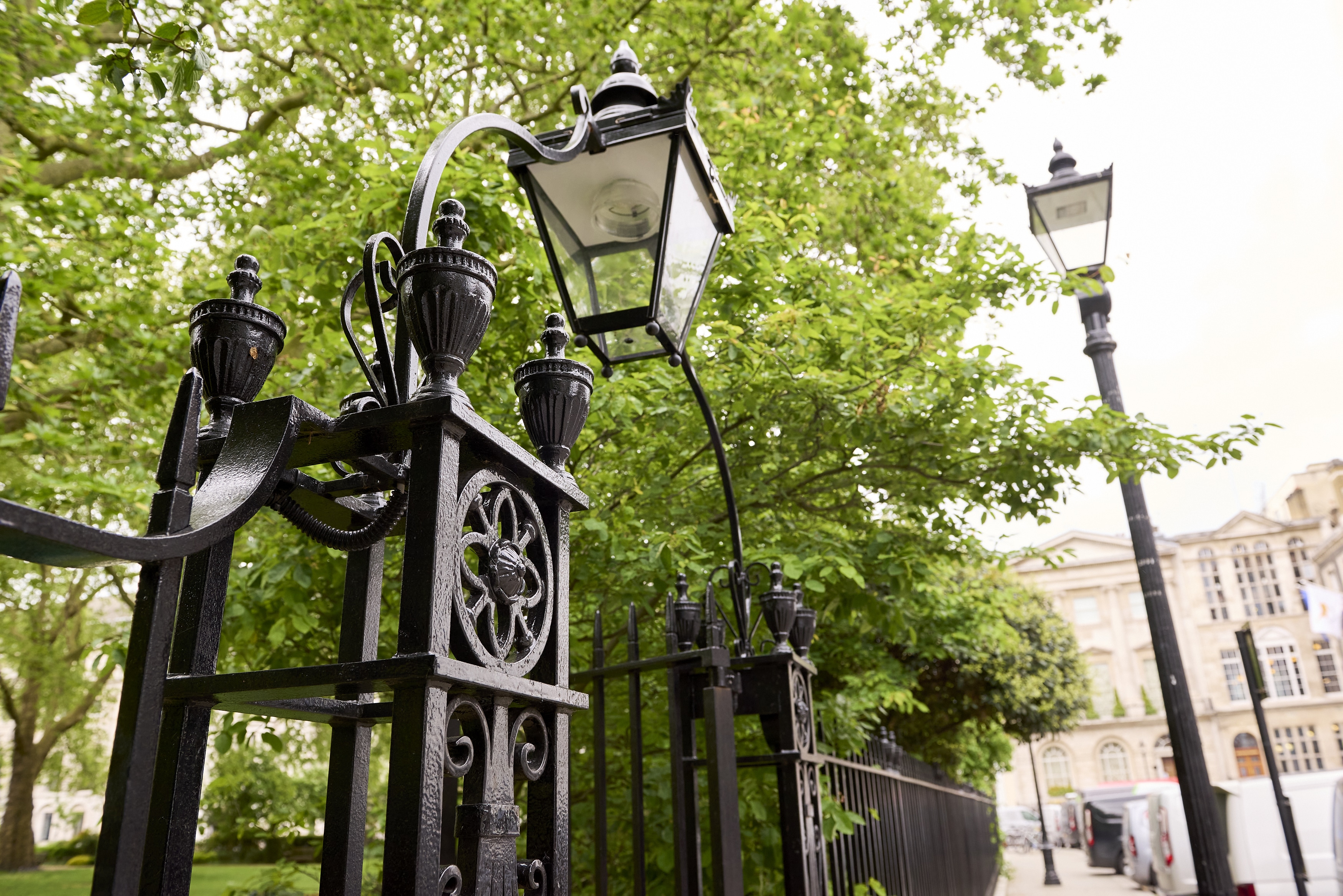 St James’s Square was designed originally in 1817 by the great John Nash, architect of Buckingham Palace and many other prominent London landmarks, the railings were removed in WW2 to be melted down to provide additional ammunition for the war effort. Basic railings were installed in 1974 but the residents of the square wanted to restore the originals and raised funds to enable the project to go ahead.